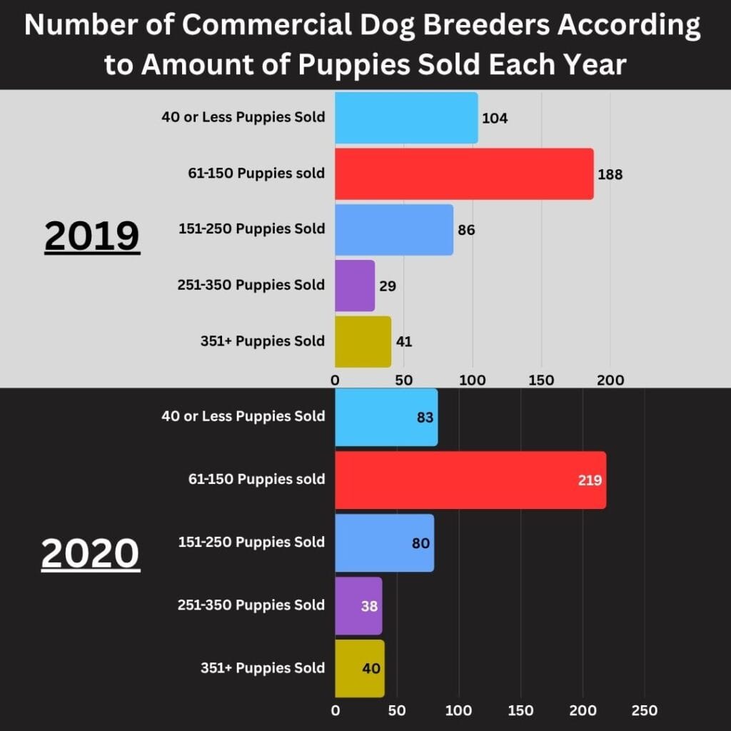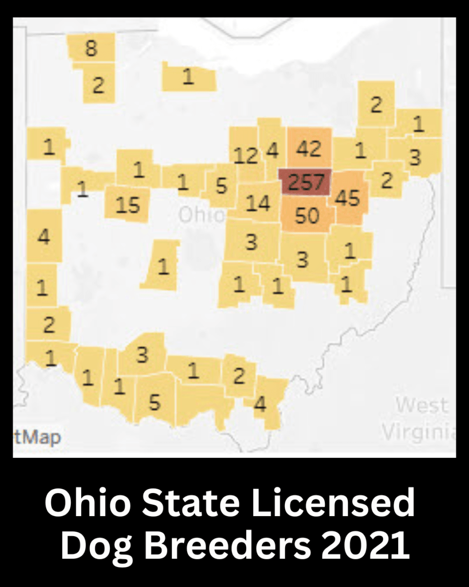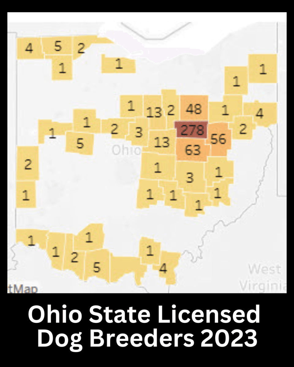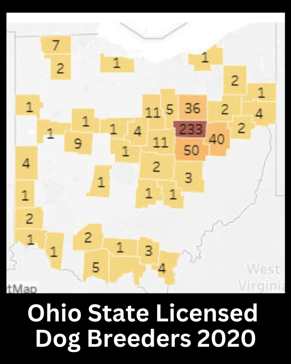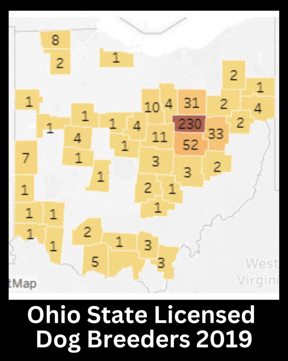 Commercial dog breeding provides a reliable source of supplemental or primary income. These facilities are a key part of the broader puppy mill pipeline that supply puppies to pet stores and online puppy sellers nationwide. The Ohio data is similar to the Indiana Pennsylvania and Illinois data.